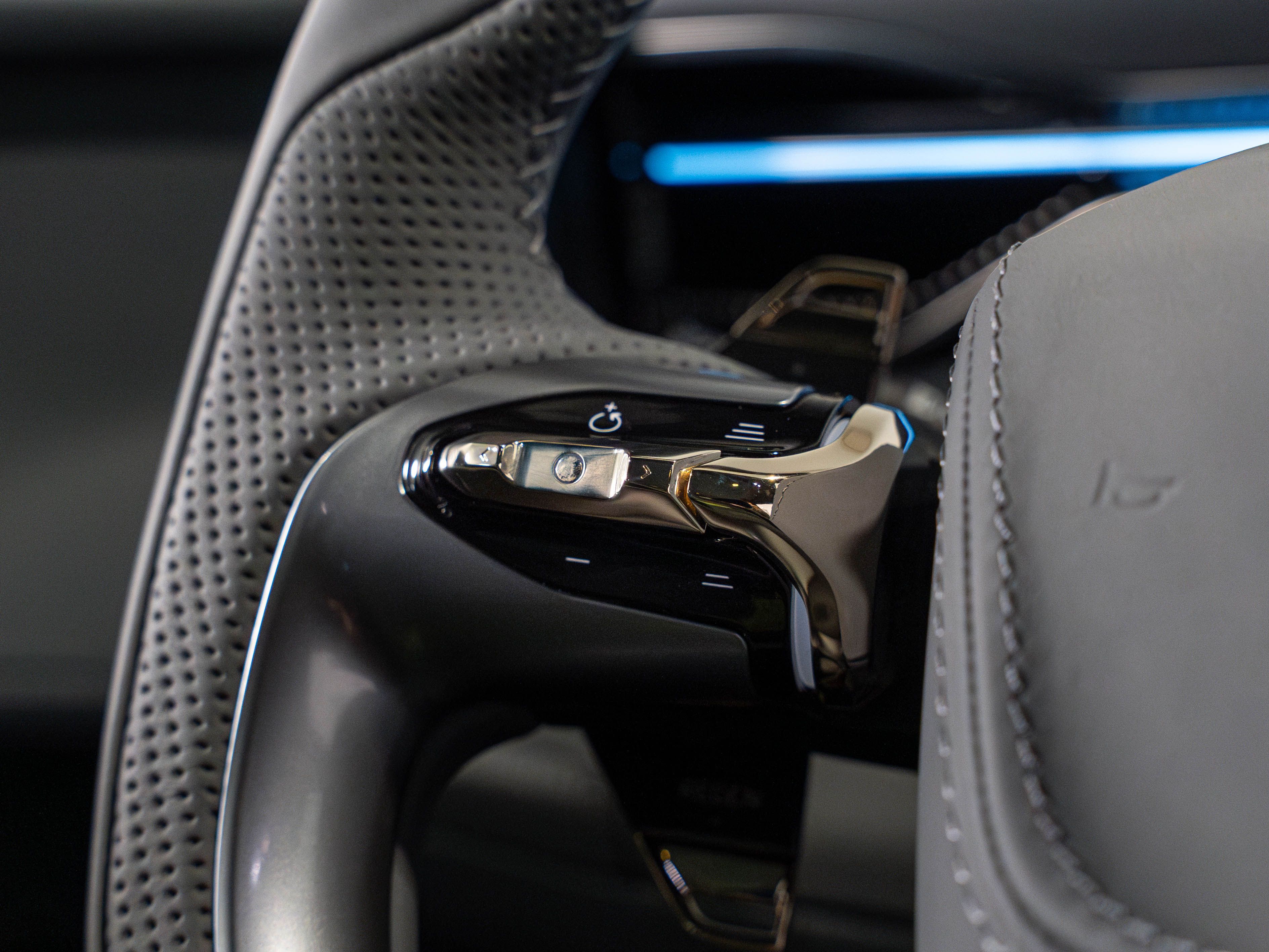 Volant : Cuir anthracite avec des accents bleu acier foncé
